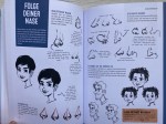 Danach enthält das Buch insgesamt 40 Tutorials, dass heißt sehr genaue Anleitungen zu verschiedenen Themen, natürlich immer in Verbindung mit vielen Bildern und Beispielen. Themen sind zum Beispiel: „Zeichnen als Gewohnheit“ (denn: Übung macht den/ die Meister*in…), einen eigenen Stil finden, Licht & Schatten, Perspektive & Tiefe, präzise Spiegelungen, Farbauswahl, Augen, Lippen, Nasen richtig zeichnen, Hände, Füße, Körpersprache, Frisuren oder auch „Streichelbares Fell“. Wer das Buch durcharbeitet (so viel ist auf den ersten Blick klar), wird sehr viel lernen.